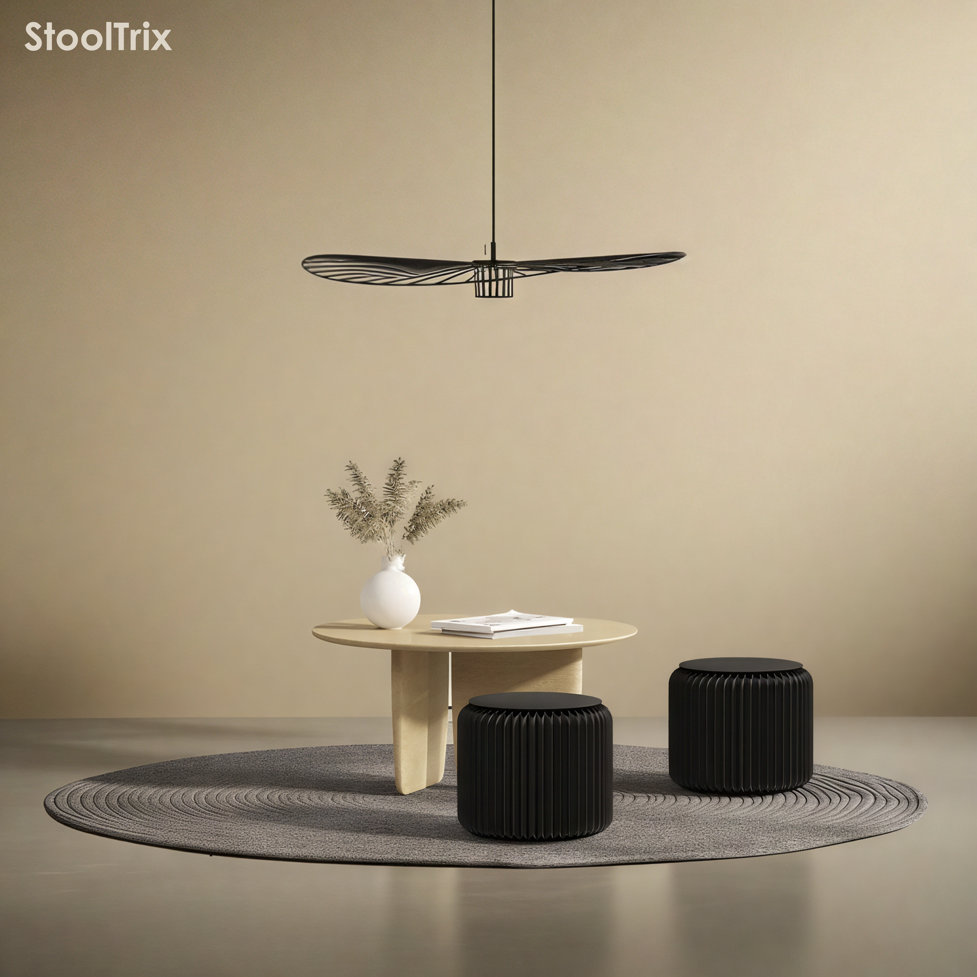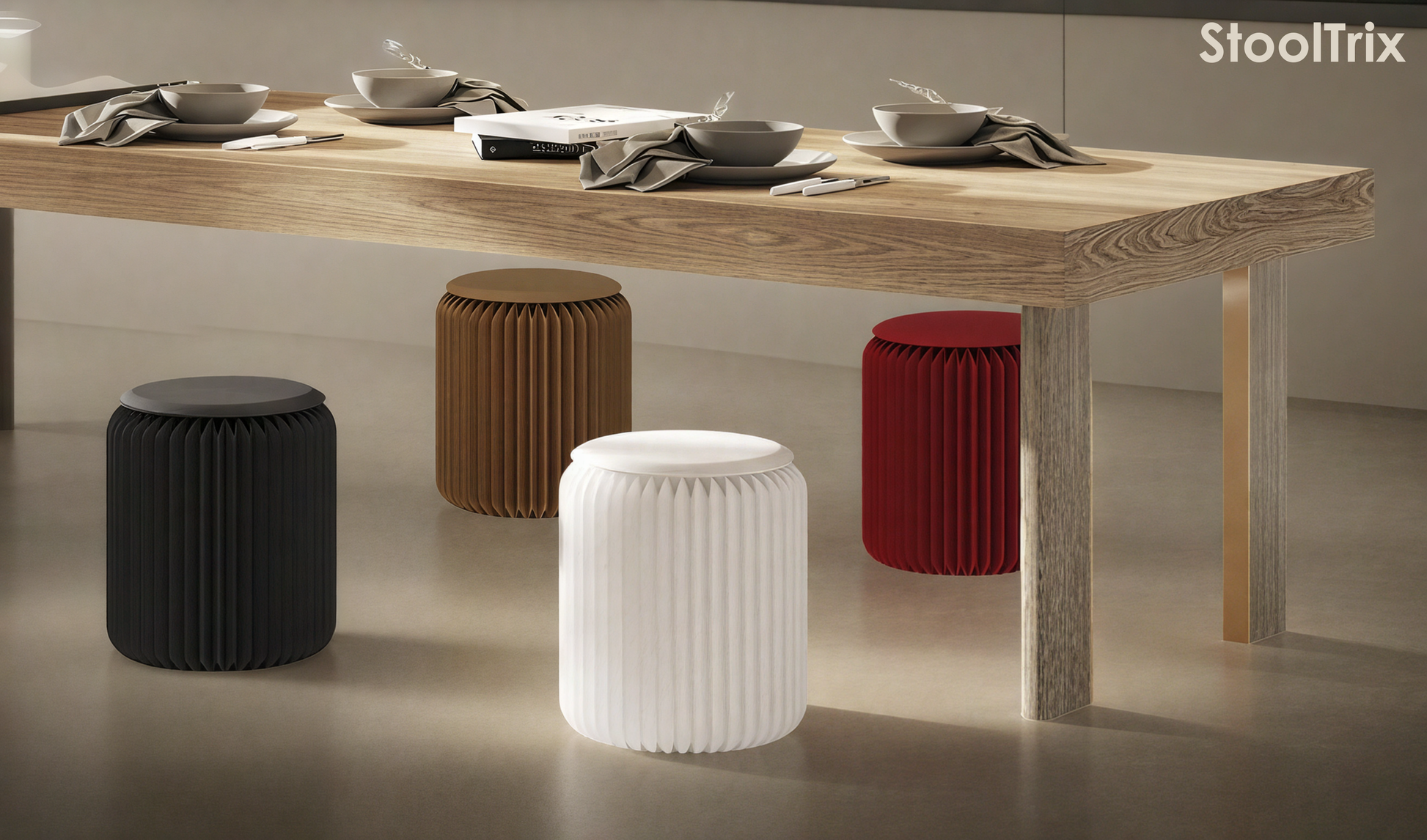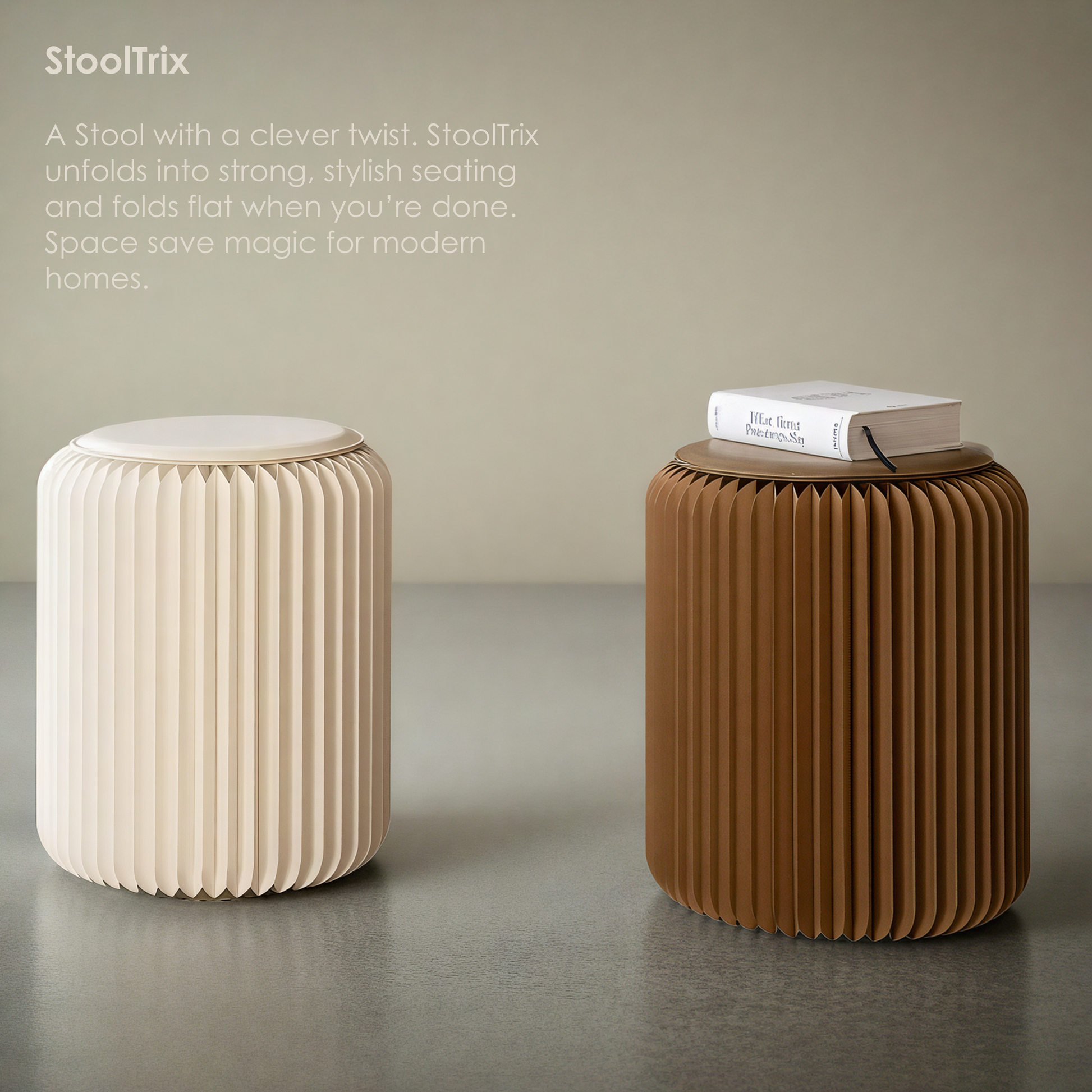 A stool with a clever twist. StoolTrix unfolds into strong, stylish seating and folds flat when you’re done. Space-saving magic for modern homes.